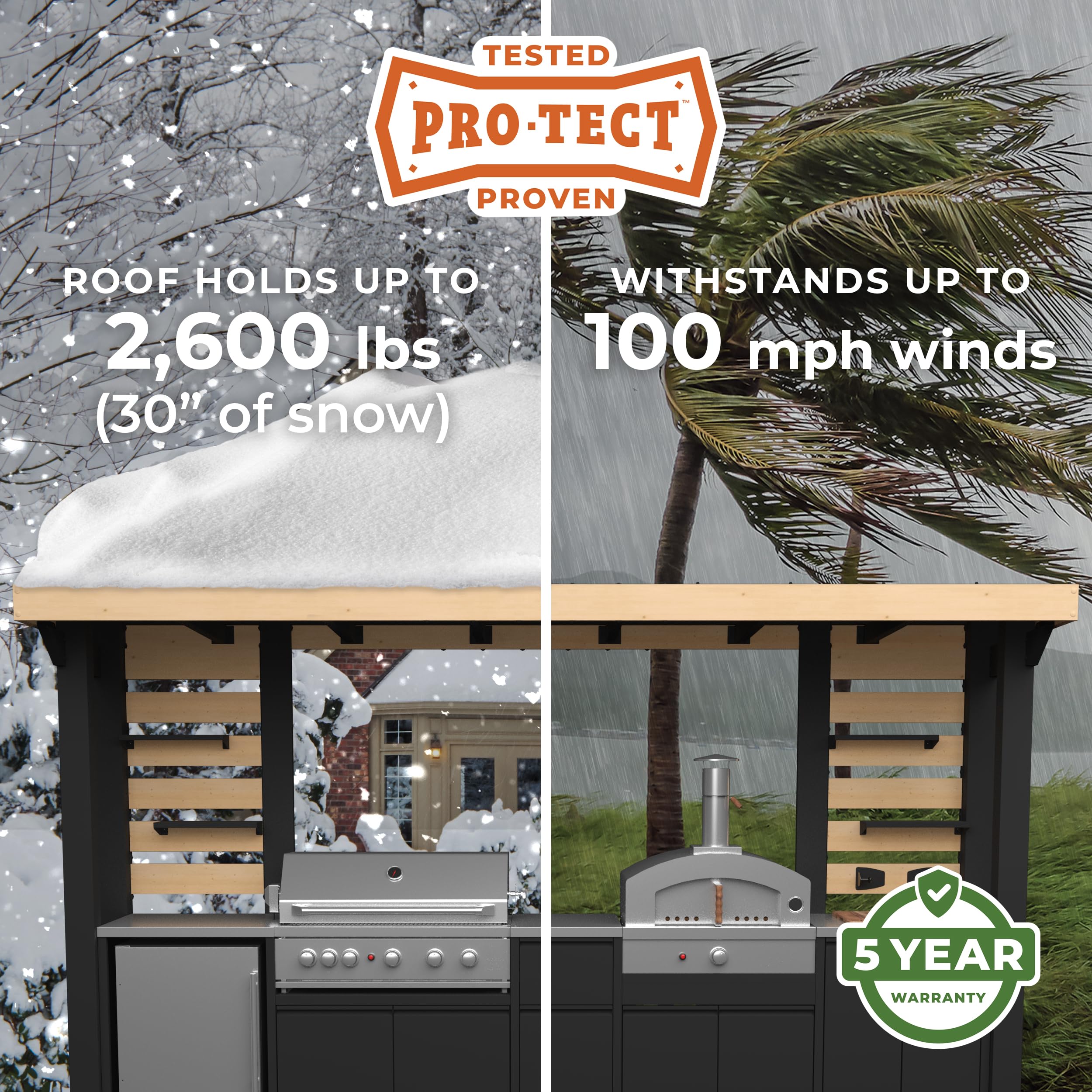 - All-Weather Durability: Pro-Tect tested and proven to withstand up to 2,600 pounds or 30 inches of snow load, and winds up to 100 mph* with a full-coverage galvanized steel roof (must be anchored as specified in the Backyard Discovery instruction manual)