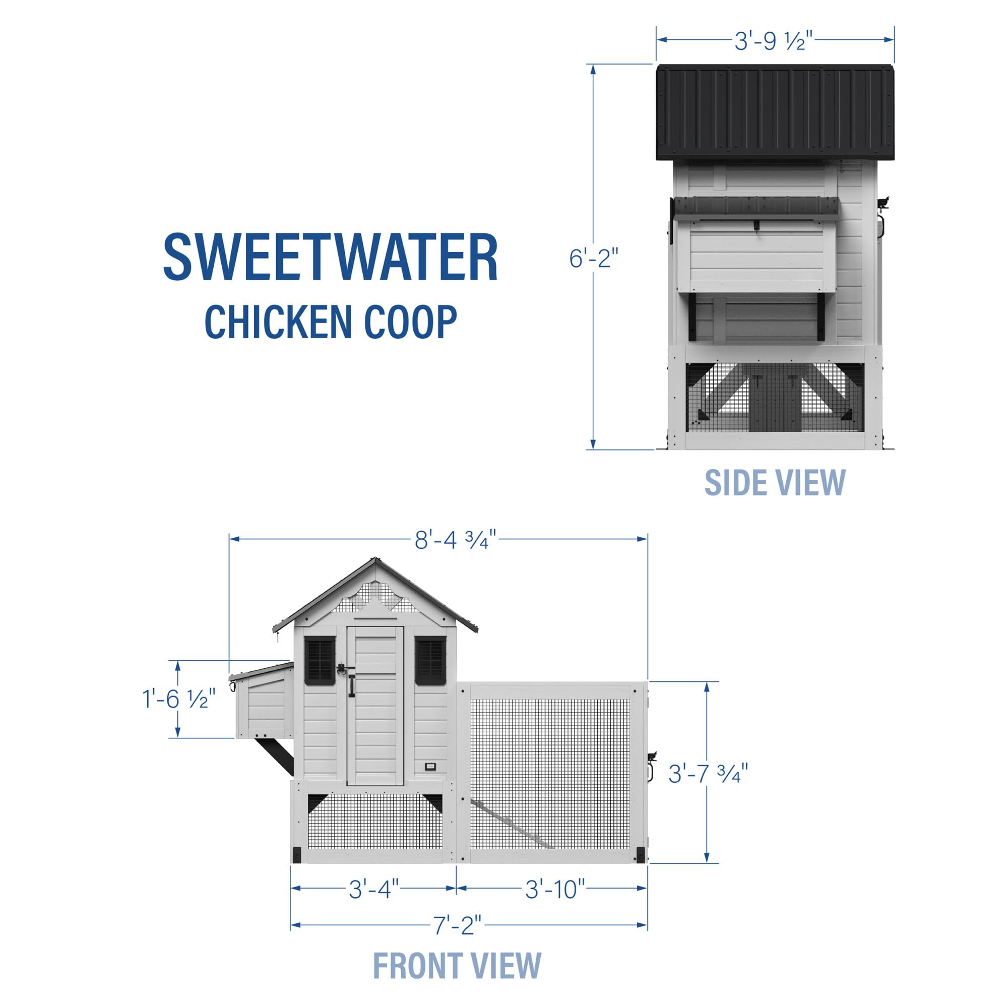 - Coop Access Door: Large exterior door features a secure latch to keep chickens safe while providing you with easy access inside the coop for cleaning and care